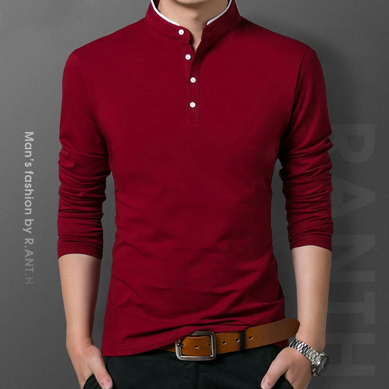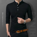 Moda Masculina Camisa Polo de Manga Longa Casual