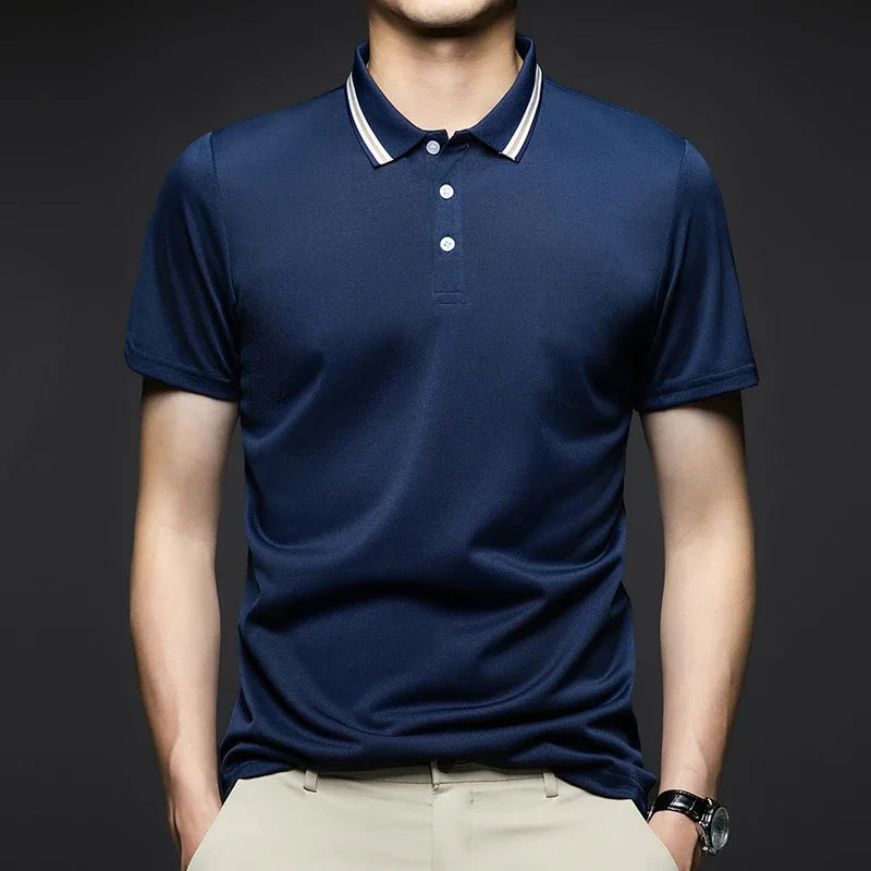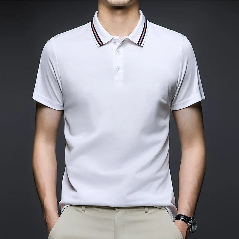 Camisa Polo Masculina de Manga Curta Listrada com Gola