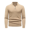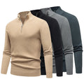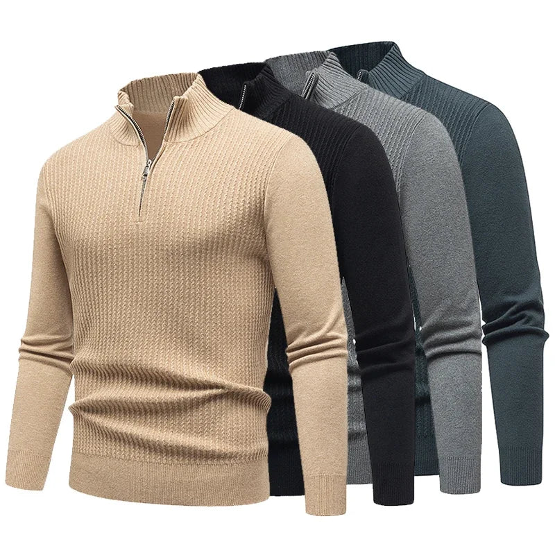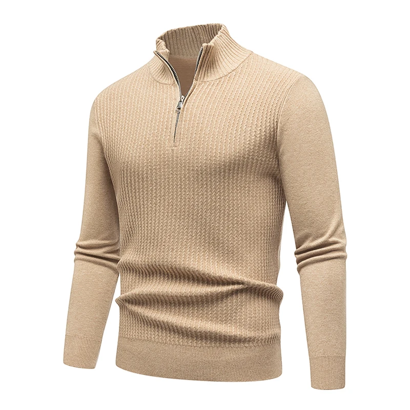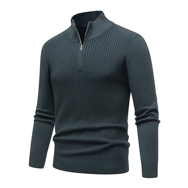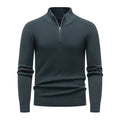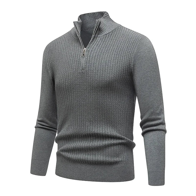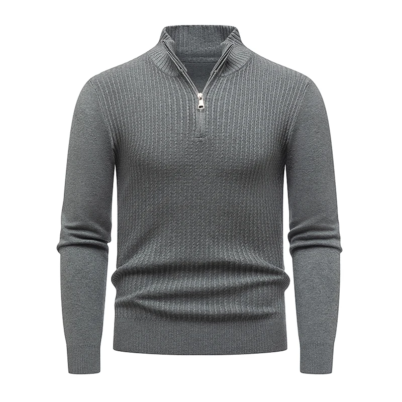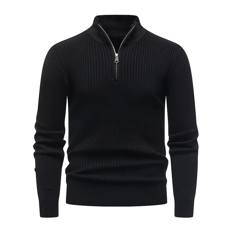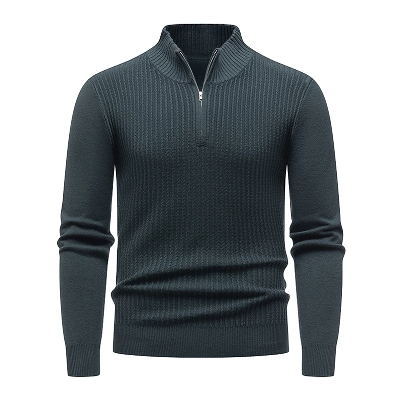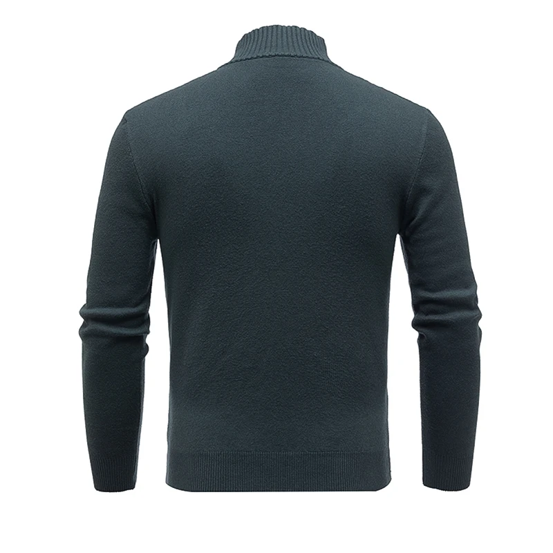 Camisa Masculina de Manga Longa Tricotada com Flor Torcida e Gola com Meio Zíper