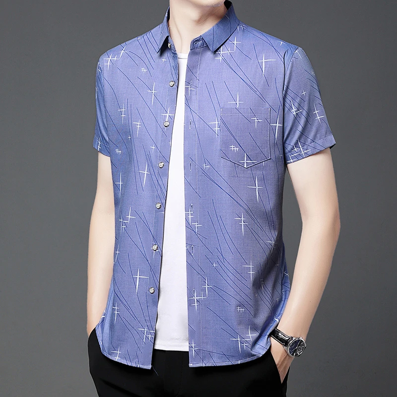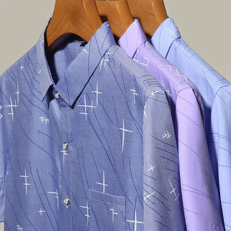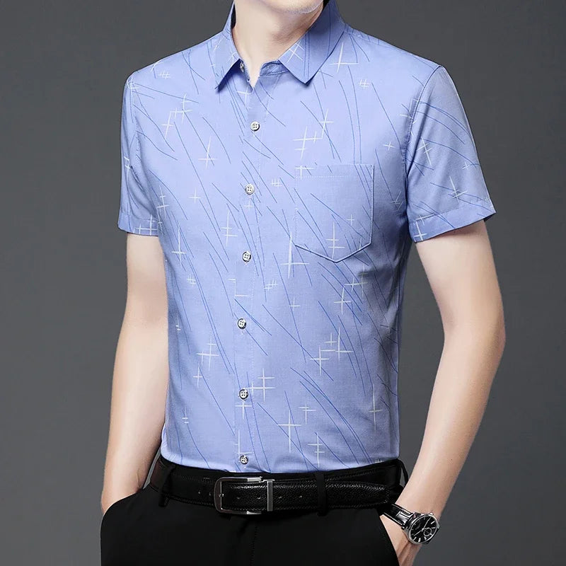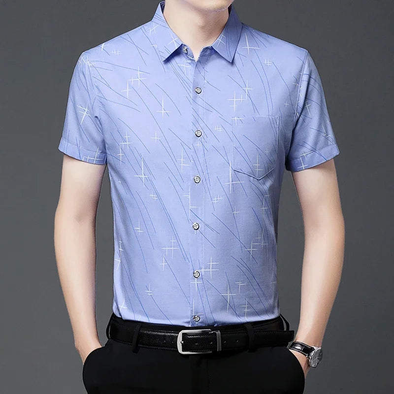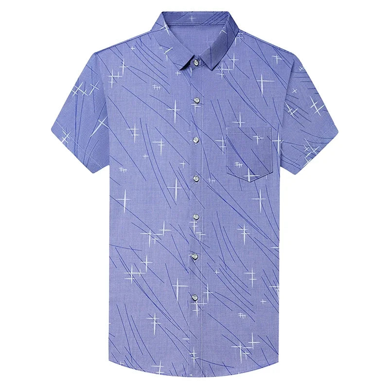 Nova Camisa Masculina Casual de Manga Curta com Estampa