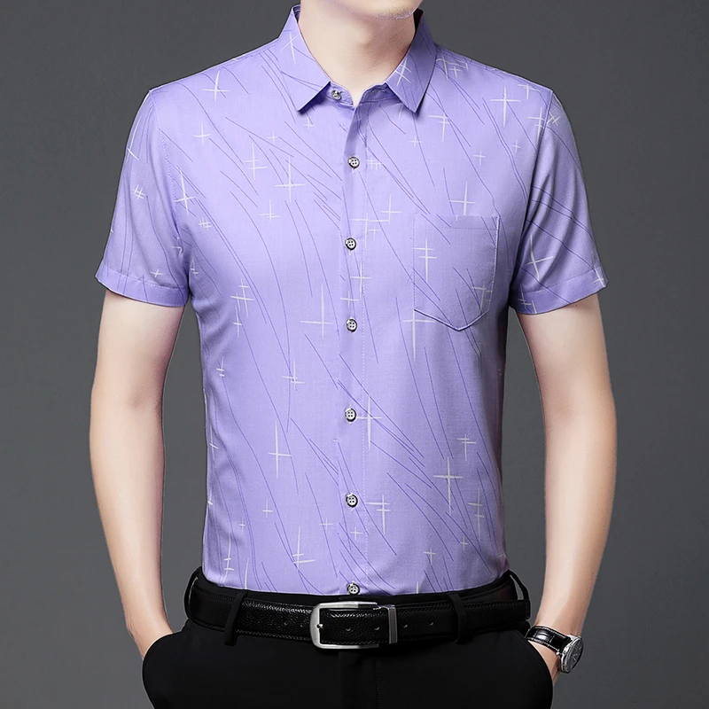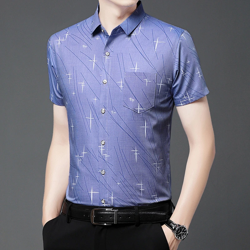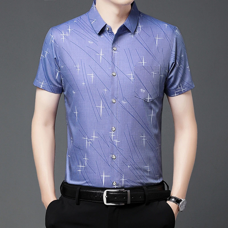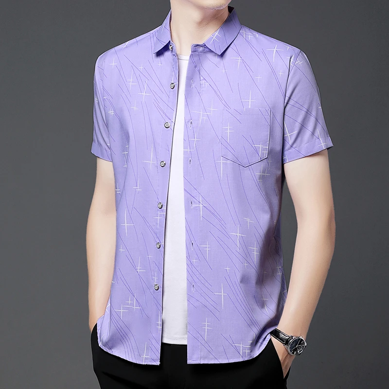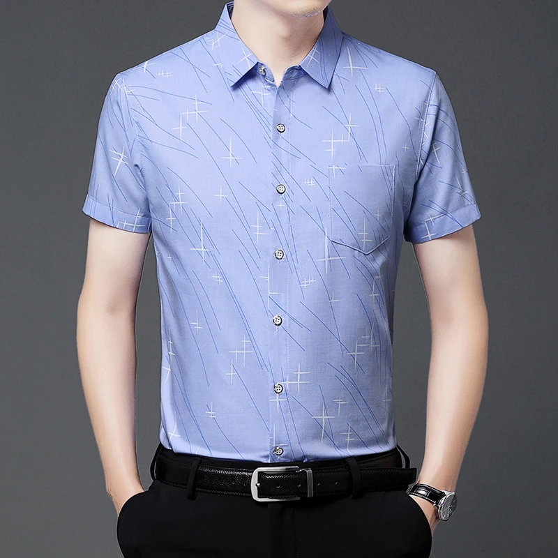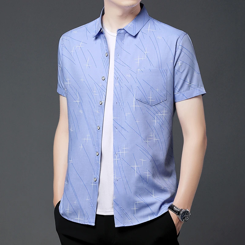 Nova Camisa Masculina Casual de Manga Curta com Estampa