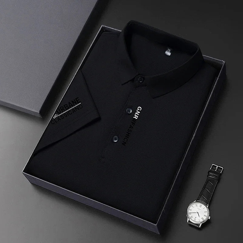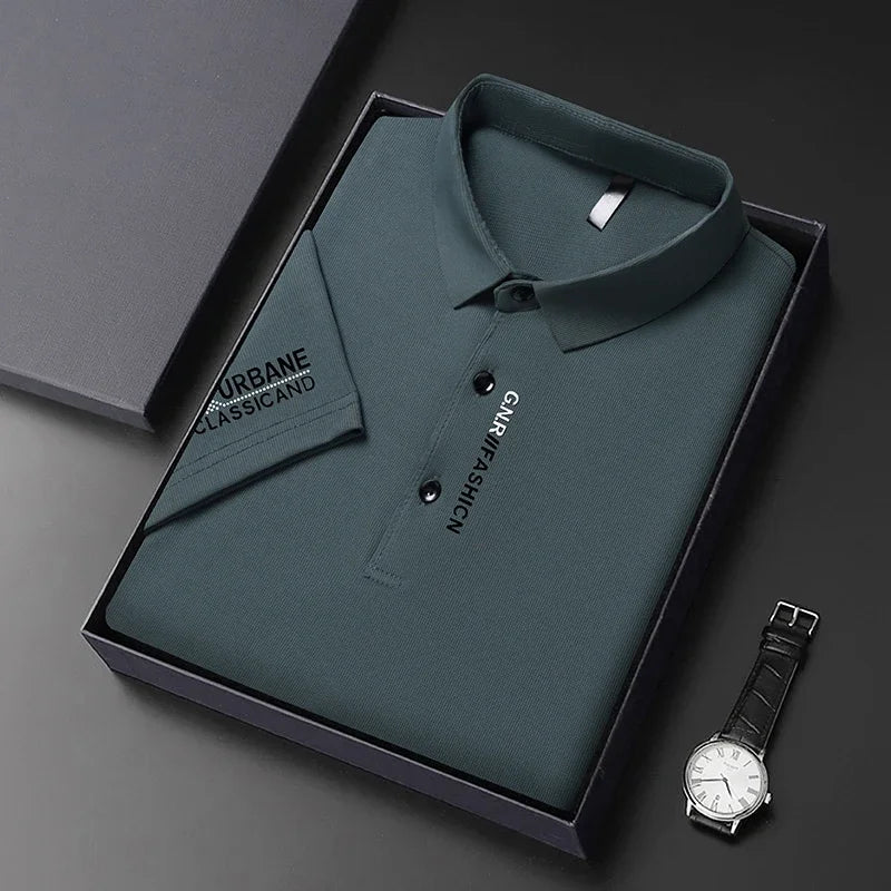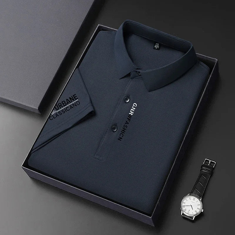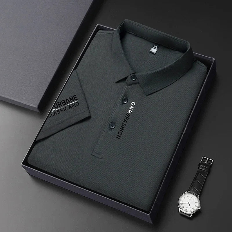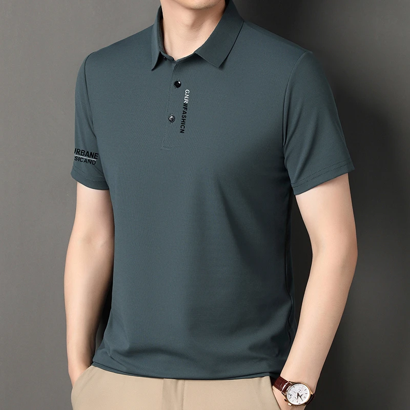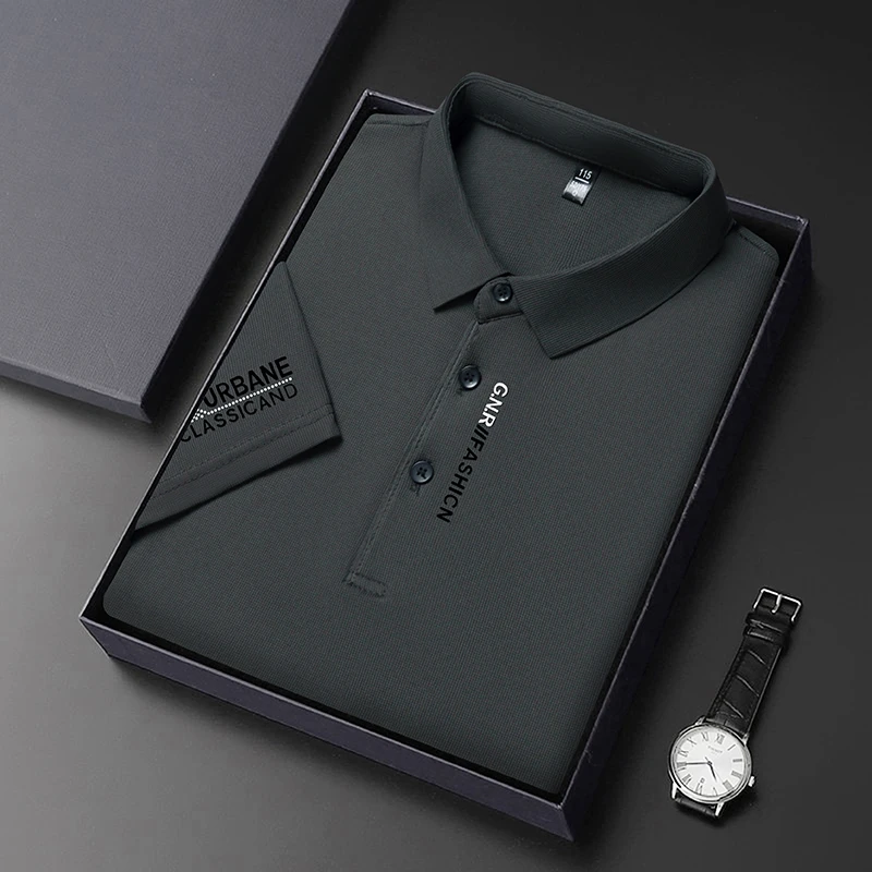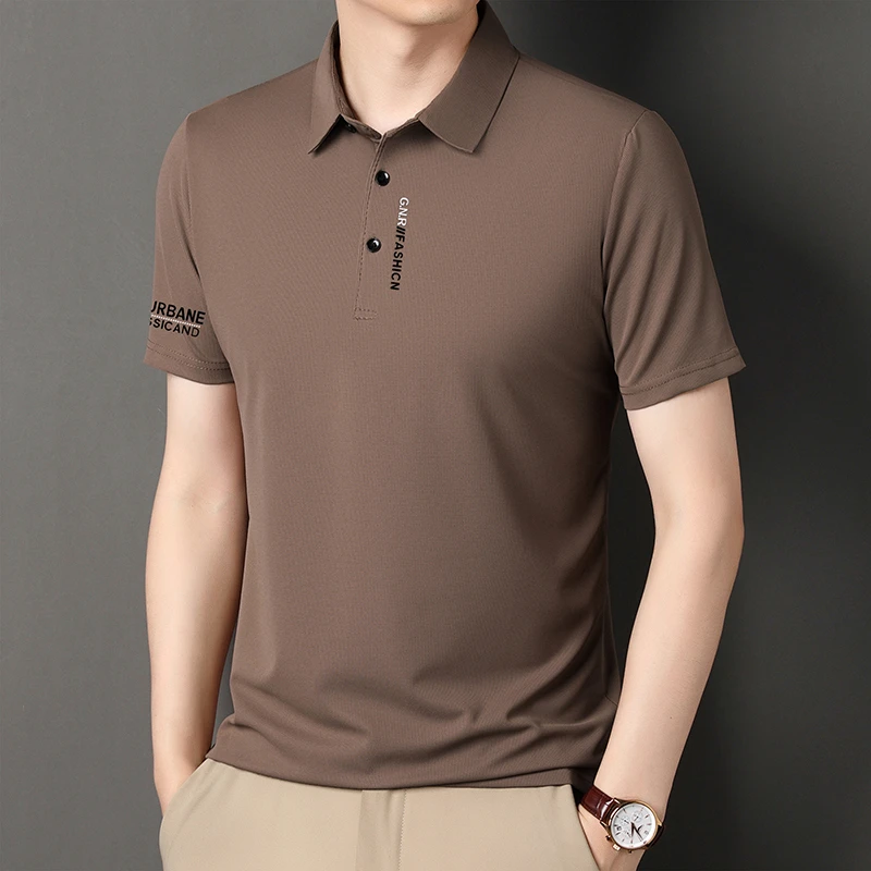 Nova Camisa Masculina Casual de Manga Curta com Distintivo